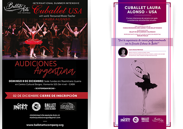 Desde el 2018 Cuba Ballet Rosario a través de su Directora Marlen Puello (Cuba) se ha convertido en representante en la Argentina del Programa de Becas del Cuballet Laura Alonso USA en coordinación con Ballet Arts Company USA. Anualmente Cuba Ballet Rosario realiza Audiciones Nacionales en coordinación con la Fundación Maximiliano Guerra otorgando Becas de estudios para que bailarines en formación argentinos tengan la posibilidad de conocer la Metodología de la Escuela Cubana de Ballet internacionalmente reconocida como una de las escuelas mas jóvenes del mundo y la única escuela con identidad en Latinoamerica .
